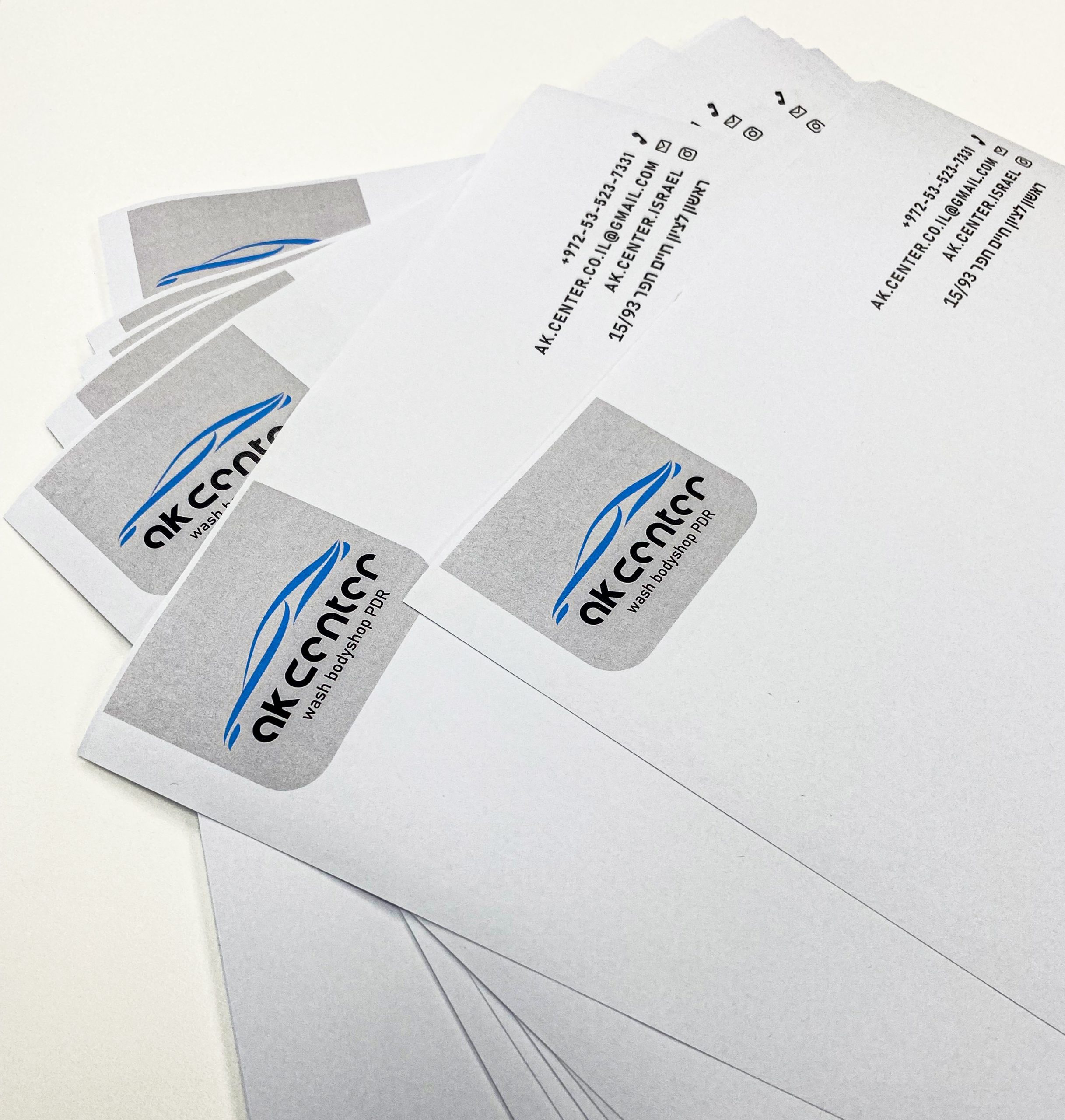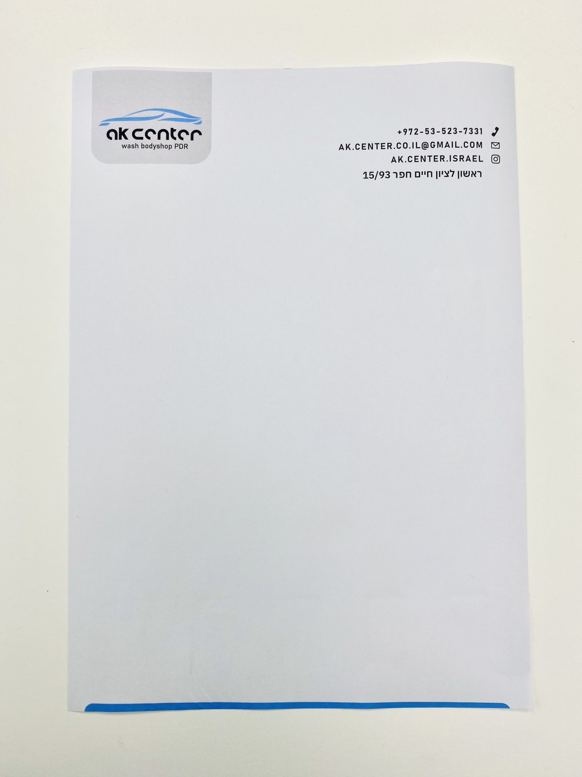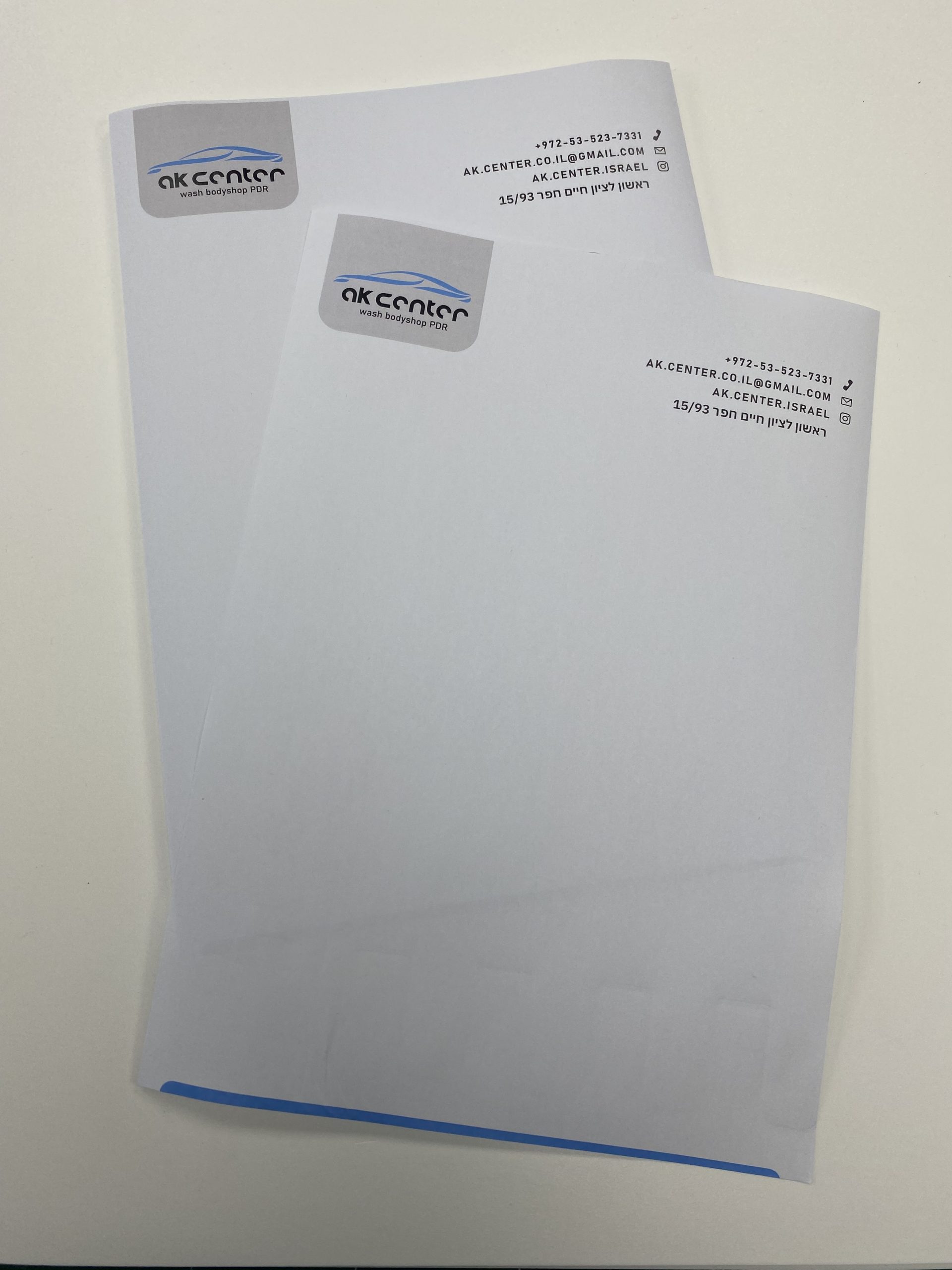 ניירות מכתבים עם כתובת, לוגו, פרטי התקשרות ועיצוב ייחודי. הדפסה צבעונית באיכות גבוהה
